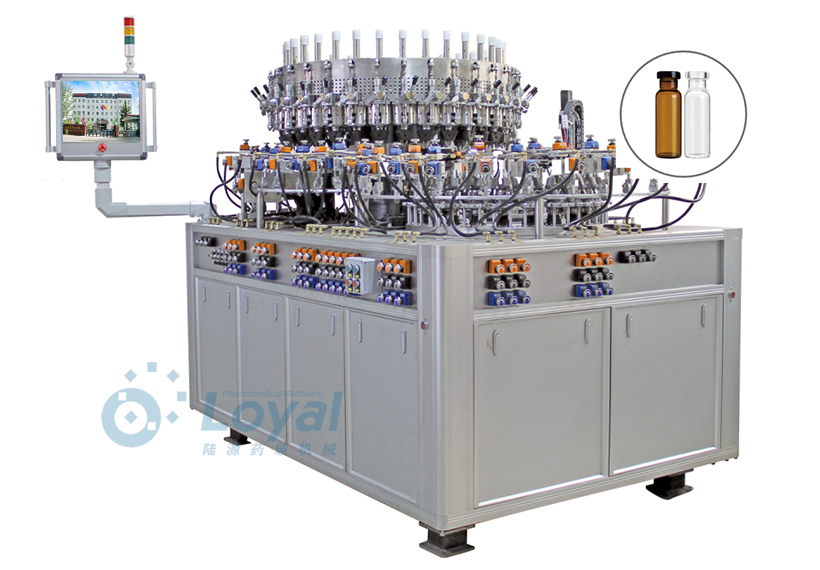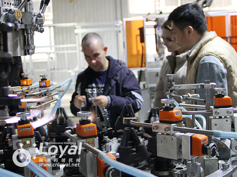 西林瓶生產(chǎn)線(xiàn)包括:自動(dòng)上管、自動(dòng)成型、經(jīng)機(jī)械手轉(zhuǎn)換至前端檢測(cè)線(xiàn)(也叫生產(chǎn)管控)、檢測(cè)線(xiàn)檢測(cè)的項(xiàng)目:1、瓶口內(nèi)外徑 2、瓶身長(zhǎng)短 3、瓶身外徑 4、瓶口邊厚 5、瓶底內(nèi)凹尺寸檢測(cè);經(jīng)檢測(cè)后的合格品再用機(jī)械手夾盤(pán)轉(zhuǎn)換至退火爐網(wǎng)帶上,經(jīng)高溫減除應(yīng)力后再降溫,通過(guò)氣動(dòng)吸盤(pán)將回火后的小瓶轉(zhuǎn)換至后端檢測(cè)線(xiàn),后端檢測(cè)(也是重檢也叫終檢),經(jīng)后端拍照檢測(cè)項(xiàng)目